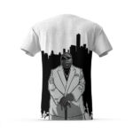 Crafted with meticulous attention to detail, this shirt features a mesmerizing city silhouette background that captures the essence of Biggie’s urban upbringing. The bold and striking design is a visual representation of his larger-than-life persona and undeniable influence on the music industry.