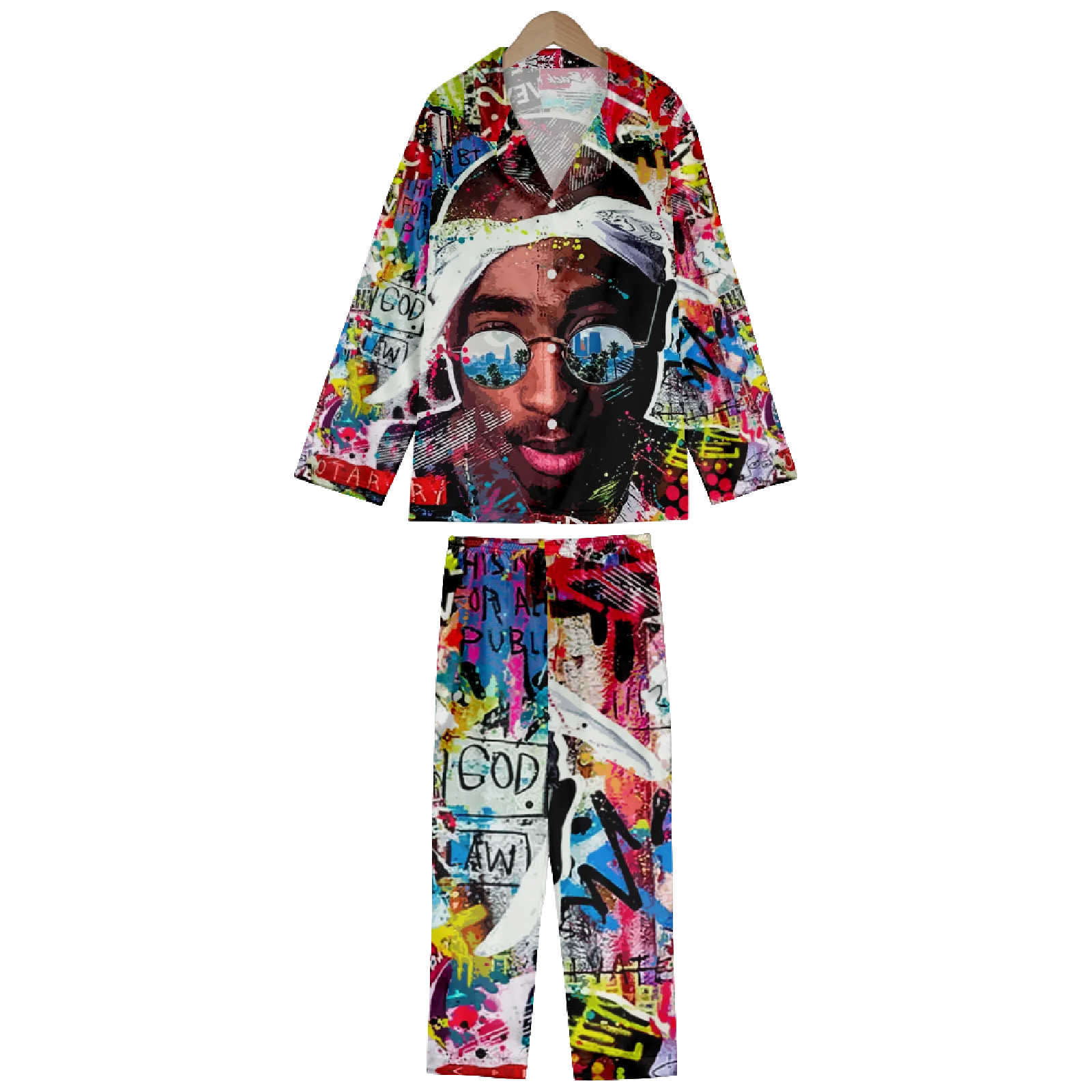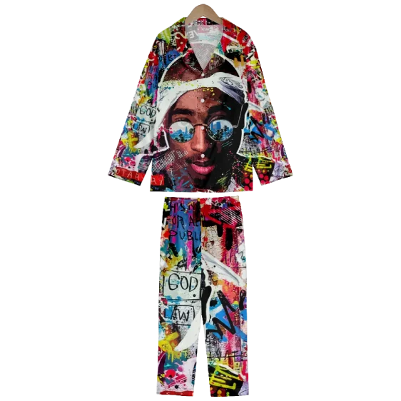 Introducing the “Rap Icon Tupac Multicolor Graffiti Art Pyjamas Set” – a vibrant and electrifying masterpiece that pays homage to the legendary Tupac Shakur. Embrace the rebellious spirit of one of hip-hop’s greatest icons with this captivating pyjama set.