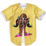 Crafted with meticulous attention to detail, this baseball uniform showcases a vibrant yellow hue that exudes energy and enthusiasm. The iconic image of Snoop Dogg with his signature braided hair is beautifully captured, adding a touch of urban culture and artistic flair to your game.
